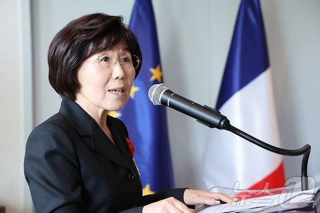 최 이사장은 한불 관계 증진 및 문화 교류에 기여한 공로를 인정받아 프랑스 국가 최고 훈장인 레지옹 도뇌르 오피시에를 한국 여성 최초로 받았다. 2025.5.15/뉴스1
