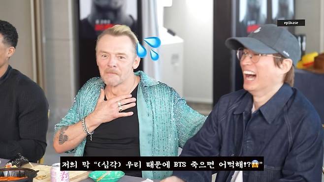 이에 사이먼 페그는 "혹시 내가 코로나를 옮겼을까 5일 내내 뉴스를 보며 걱정했다. BTS가 괜찮은지 확인하려 했다. 우리 때문에 BTS가 죽을 까봐 걱정했다"라며 예상치 못한 고백으로 모두를 놀라게 했다.