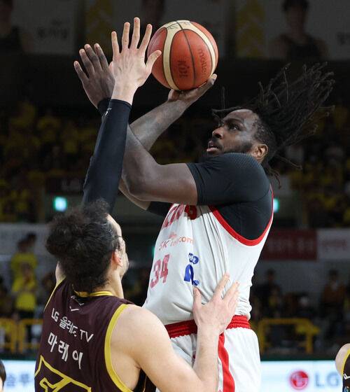 SK 자밀 워니가 슛하고 있다.