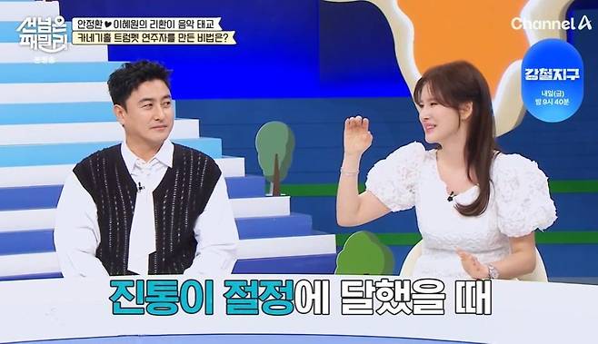 이를 듣던 이혜원도 둘째 임신 당시를 회상했다. 그는 "둘째 때는 태교에 좀 더 신경을 썼다. 그때 임신을 하자마자 남편 안정환이 오디오 스피커를 샀다"고 말했다.