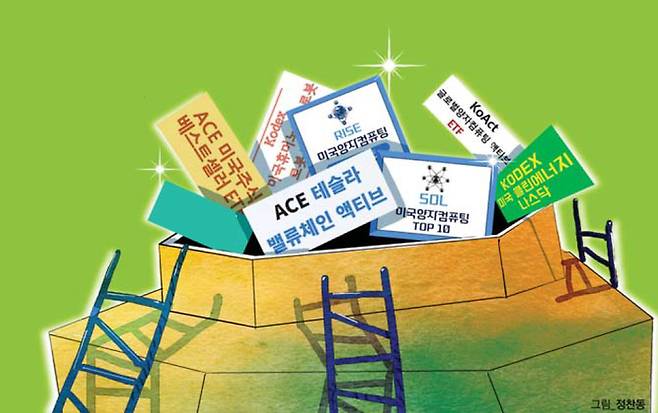 이어서 ‘KODEX 운송’(14.08%)과 ‘ACE 미국주식베스트셀러’(13.66%)가 각각 4위와 5위에 올랐다. KODEX 운송은 한진칼(28.35%) 비중이 높다. 최근 경영권 분쟁으로 한진칼 주가가 일주일 새 45.86% 급등하며 ETF 수익률을 끌어올린 것으로 풀이된다.