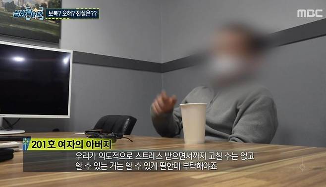 이후 201호 아버지는 "딸이 의도적으로 보복을 하기 위해서 한 거는 없다"라며 딸을 대변했다.