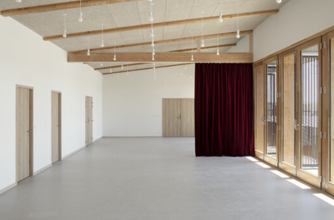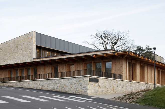 브리브라가야르드(Brive la Gaillarde)의 리베(Rivet)에 위치한 클로드 미슐레(Claude Michelet) 다목적 공간은 이 지역 주민들의 일상을 연결하고 통합하는 새로운 모임의 장이 되었습니다. 브리브 라 가야르드 고지대라는 특권적 위치를 활용한 설계는 지역의 자연경관과 완벽히 조화를 이루고 있습니다. 외관에서부터 내부 공간에 이르기까지, 석재와 목재가 주는 따뜻한 느낌의 재료를 적극적으로 사용했습니다.