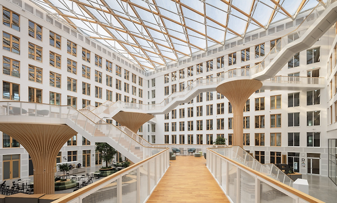 EDGE Suedkreuz Berlin은 이와 같은 조건에 대응하기 위한 설계가 실제로 구현된 사례입니다. 이 건물의 사무공간에는 점유 여부를 감지하는 센서가 천장 모듈에 통합되어 있으며, 해당 정보는 자동으로 공조 시스템과 조명에 반영됩니다. 사용자가 자리를 비우면 조명은 자동으로 낮아지고, 일정 시간 이상 공간이 사용되지 않으면 냉난방 가동도 최소화됩니다. 별도의 조작 없이 시스템이 사용 상태를 인식하고 반응하는 방식은, 건물 운영의 효율을 높이는 동시에 사용자의 개입을 줄여 줍니다.
