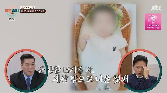 한 달만에 헤어진 두 사람은 3년 뒤 재회했고, 남편이 군대 가기 3일 전에 다시 만나 교제를 시작했다. 군대 간 남편이 휴가를 나왔을 때 아내가 임신이 됐고, 첫째 출산 휴가에 둘째까지 임신을 했다고 밝혀 놀라움을 안겼다. 결국 두 사람은 둘째를 임신한 후에야 혼인 신고를 했다.