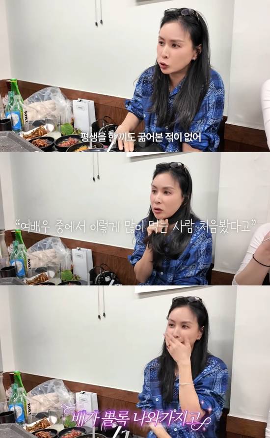 그는 "식단 조절 같은 건 해본 적 없다. 평생 한 끼도 굶어본 적 없다. 그런 자제력은 없다. 여배우 중 이렇게 많이 먹는 사람 처음 본다고 하더라"고 너스레를 떨었다.