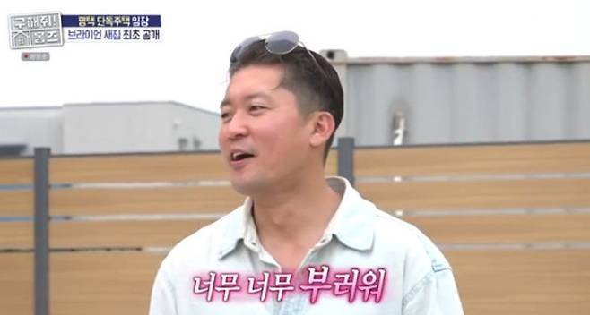 이에 장동민은 “집을 짓는 게 끝이 아니라 다음부터가 시작이다. 하자 보수 계약서에 언급하며 브라이언을 솔깃하게 만들었다. 평생 보장으로 업체가 도와주기로 했다는 브라이언의 말에 MC들은 계약서가 중요하다고 강조했다. 이어 집 때문에 서울과 평택을 왔다갔다한다는 브라이언은 ”일주일에 평택 5일 서울 2일 있다. 어릴 때부터 도시보다 시골 쪽이 좋았다. 시골이 조금 더 편하다“라고 털어놨다.