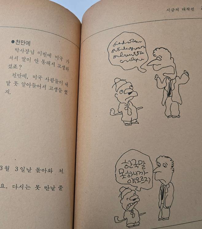 요즘 들어 자주 생각나는 유머는 바로 이것입니다. ‘외국인이 한국어를 몰라 답답해한다!’ 당시에는 무슨 말도 안되는 말인가 싶었습니다만, 지금은 그것이 실제로 일어났습니다! K팝과 K드라마를 보다가 한국어를 모르는 답답함을 해소하기 위해 세계 곳곳에서 한국어를 배우는 사례가 엄청나게 많아졌습니다... 이것은 시대를 앞서간 유머라고 해야 할까요?