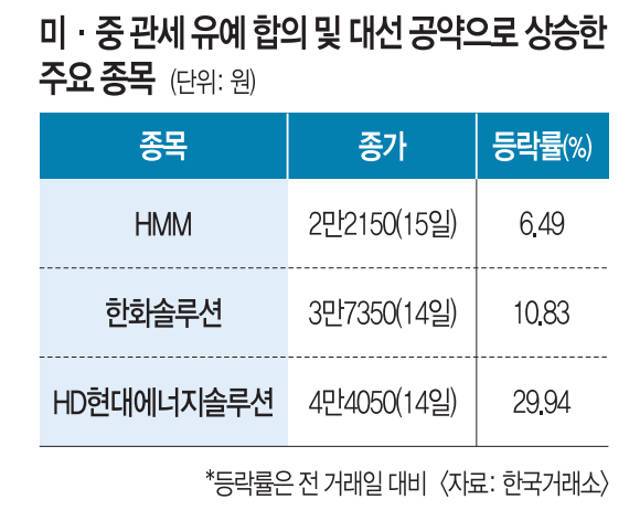 미·중 ‘관세 휴전’에 대선 공약 효과… 치솟는 해운·태양광주