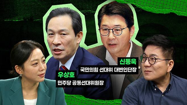 정유미 기자 : 대선 특집 '정치컨설팅 스토브리그' 시작하겠습니다. 오늘도 이 시간 생방송으로 함께 하겠습니다. 대선이 정말 얼마 남지 않은 만큼 오늘은 민주당 분 그 다음에 국민의힘 분 같이 한 자리에 모시고 얘기 나눠보겠습니다. 우상호 민주당 공동선대위원장 그리고 신동욱 국민의힘 선대위 대변인 단장 모시겠습니다. 어서 오세요. 우리 윤태곤 실장님 오늘도 함께 하시겠습니다.
