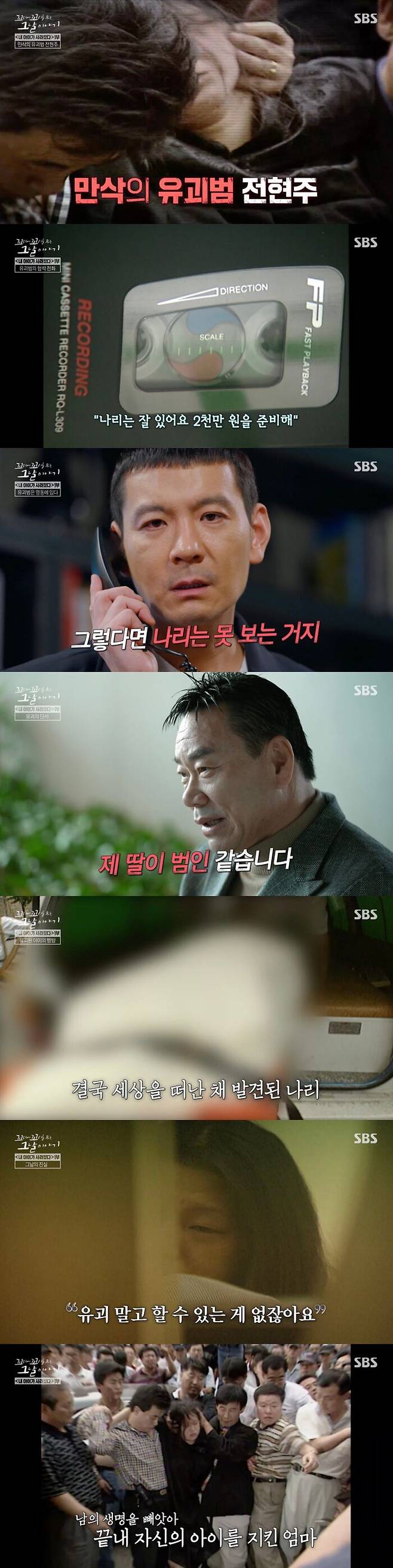 15일 방송된 SBS '꼬리에 꼬리를 무는 그날 이야기'(이하 '꼬꼬무')에서는 만삭의 유괴범 전현주의 그날을 추적했다.