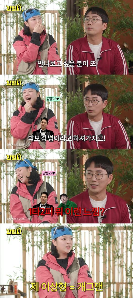 '폭싹 속았수다' 코스프레를 하고 온 이유에 대해서 곽범은 "'폭싹 속았수다'를 최애 드라마로 선택을 하셨다고 해서 조금 귀여움 받고자 (했다)"고 밝혔고, 이창호는 "만나보고 싶은 분이 박보검 님이라고 해서 1타 2피다. 느낌이라도 내보려고 했다"고 너스레를 떨었다.