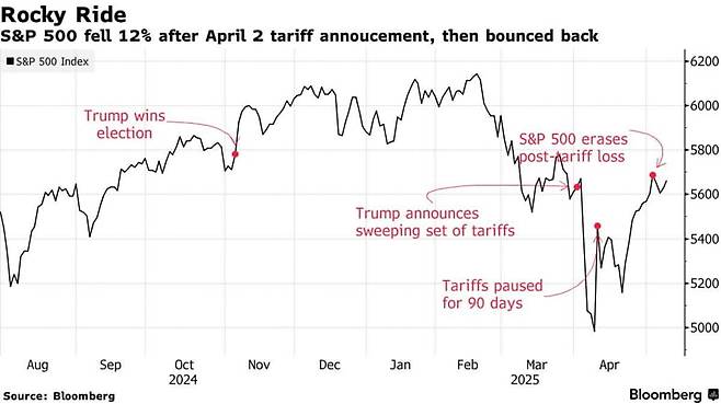 미국 증시가 지난 4월 2일 도널드 트럼프 미국 대통령의 관세 정책 발표 이후의 충격을 모두 지웠습니다. 나스닥은 저점 대비 20% 상승했고, S&P500은 15일(현지시간) 주요 지지선이었던 5,900을 돌파하는 데 성공했습니다.