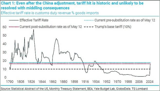 ① 관세 유예가 종료되면 언제든 다시 긴장이 고조되는 국면이 재현될 수 있습니다. 블리츠는 트럼프 대통령이 감세안이 통과되면 다시 공격적인 관세 정책에 나설 것으로 예상하고 있습니다. ② 트럼프 정부 출범 이전 3%였던 미국의 실질 관세율은 관세 대부분이 유예된 지금도 이미 13~16% 수준입니다. 현재의 관세율이 추가 인상 없이 유지된대도 미국 경제 성장률은 전년 대비 상당폭 둔화할 수밖에 없습니다. 인플레이션은 더 높아질 위험이 상존합니다.