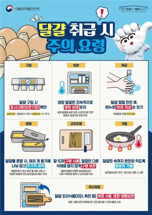 식약처는 특히 육류나 가금류는 속까지 완전히 익혀서 섭취해야 하며, 달걀을 만진 손이나 생닭을 씻은 물 등으로 인해 발생하는 교차오염에 각별히 주의해야 한다고 강조했습니다.