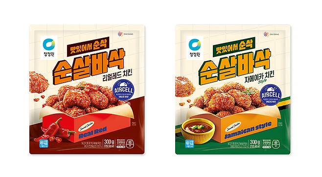 '청정원 순살바삭치킨 리얼레드'는 홍고추와 딸기잼을 활용한 특제 레드소스를 발랐다. '청정원 순살바삭치킨 자메이카 style'은 카리브해 지역 자메이카 저크 소스를 입혔다.