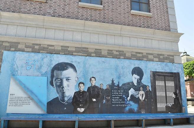 | ▲ 합천 영상테마파크안에 걸려있는 영화 '동주'의 화면 |