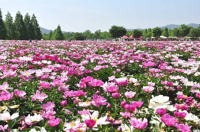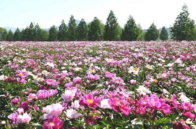 | ▲ 드넓은 작약밭에 빼곡하게 피어난 작악꽃 |