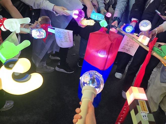 | ▲ 지난 3월 1일 대구 중구 동성로에서 열린 21차 대구시민시국대회 당시 집회에 참여한 시민들이 모여 찍은 응원봉들. |