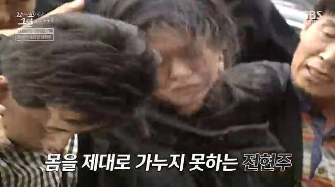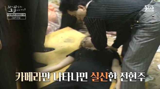 형사들 부축 속에 걸어가고, 현장검증 인형도 제대로 못 쳐다봐. 지친 표정의 전현주는 눈물을 흘렸어. 그리고 실신했어. 전현주는 멀쩡히 잘 있다가도, 카메라만 들이대면 실신을 했다고 해. 전현주는 약취유인살해 혐의로 서울구치소에 구속됐어.