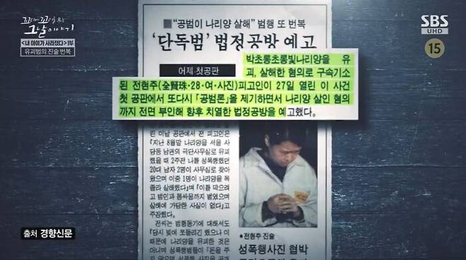 - [스브스夜] '꼬꼬무' 만삭의 유괴범 전현주, "이 몸으로 돈을 벌 방법은 유괴뿐"···공분 자아낸