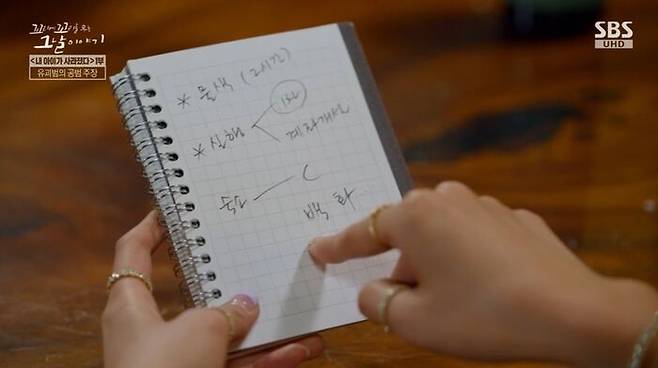 '물색(2시간)', '실행', '계좌개설'. 그리고 여기서 'C'는, 나리 엄마에게 카드를 가져오라고 했잖아? 그 카드를 의미하는 걸로 추정돼. 또 '숙소'라고 되어 있는데, 이건 남편의 극단 사무실 같아. 게다가 수첩 여기저기에서 '2천만 원'이라고 쓴 메모도 확인됐어.