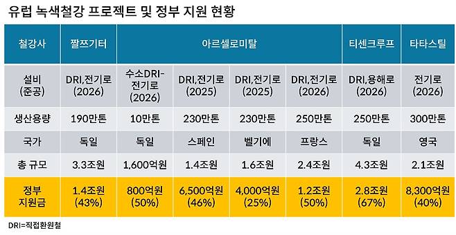 | ▲ 유럽 녹색철강 프로젝트 및 정부 지원 현황 |