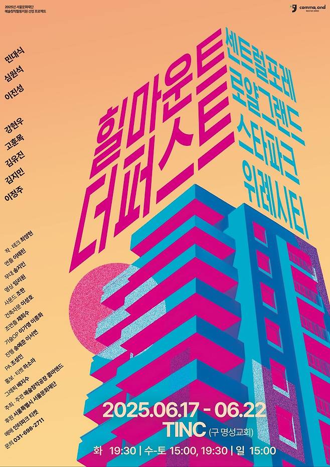 이 황당하면서도 현실적인 이름을 내건 이머시브 연극 '힐마운트 더퍼스트 센트럴포레 로얄그랜드 스타파크 위례시티(이하 힐마운트)'가 6월 17일부터 22일까지 서울 대학로 TINC(구 명성교회)에서 관객들을 만난다.