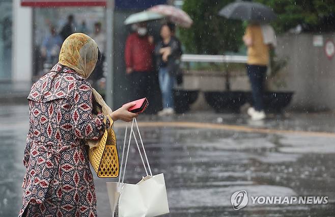 (서울=연합뉴스) 이진욱 기자 = 16일 서울역 일대에 비가 내리고 있다. 2025.5.16