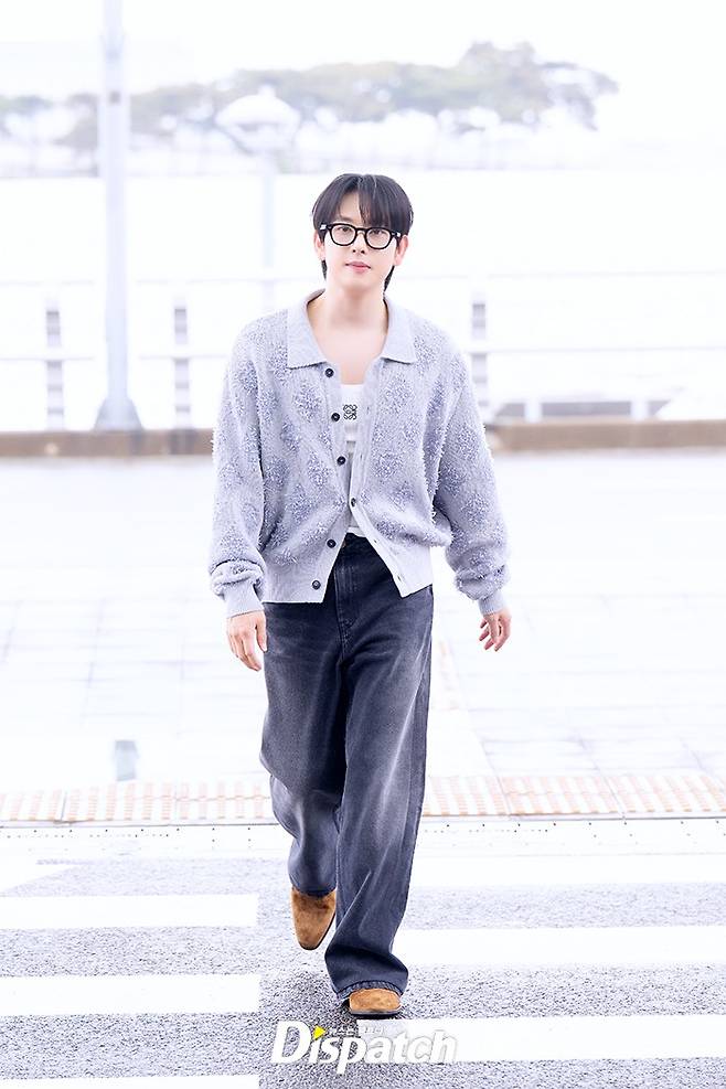 임시완은 데님 팬츠에 가디건을 매치해 댄디한 공항패션을 연출했다. 훈훈한 비주얼이 돋보였다.