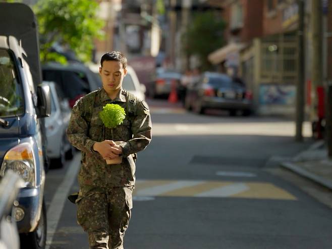 영화는 입대 후 얼마 지나지 않아 외출을 나온 병사 주민형(주민형 분)의 이야기다. 이제 막 일병 약장을 단 듯한 그는 짧은 외출을 나온 기회에 여자친구를 만나러 간다. 그런데 막상 찾아온 여자친구의 집엔 그녀는 오간 데 없고 웬 이삿짐센터 직원이 짐을 옮겨 담고 있다. 군대에서부터 여자친구와 연락이 끊긴 모양인 주민형 일병은 남몰래 집에서 빈 화분을 하나 훔쳐들고 나와 무작정 인근 거리를 걷는다.
