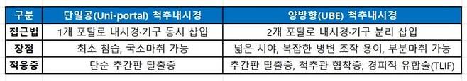 ![왼쪽은 양방향(UBE) 척추 수술, 오른쪽은 단일공(Uni-port) 척추내시경 수술. [그래픽=부산 연세척병원]](https://img4.daumcdn.net/thumb/R658x0.q70/?fname=https://t1.daumcdn.net/news/202505/16/KorMedi/20250516144619195qaoz.jpg)