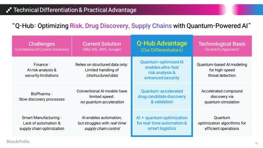 스톡폴리오는 IBM Quantum의 글로벌 협업 프로그램(IBM Quantum Accelerator Program) 최종 선정 기업 중 하나로, 기업 맞춤형 AI+양자 컴퓨팅 플랫폼인 'Q-Hub'의 공동 개발을 본격화하고 있다. 특히 미국은 에너지·방산·금융 등 민관 주요 시스템에 양자 기술을 실질 적용하기 위한 기술 패권 강화에 착수한 상황이다. IBM, AWS, Google 등 글로벌 테크기업들도 자국 전략에 따라 적극적으로 협력 기업을 선정하고 있는 가운데, 스톡폴리오의 선정은 한국 딥테크 스타트업의 글로벌 기술 안보망 편입을 의미한다는 평가다.
