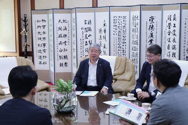 이 자리에서 정태희 회장은 대전상의가 추진 중인 대덕연구개발특구 내 정부출연연구소·기업·대학 기술사업화 지원 사업, 지역 대학-우수기업 기업채용 설명회 및 기업탐방 프로그램, 회원사 업무역량강화 아카데미 교육, 기업지원 및 지역 소식·축제 뉴스레터 홍보 등 기업지원 사업을 소개했다.