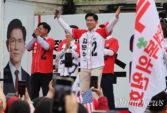 | ▲ 김문수 국민의힘 대선 후보가 16일 경기도 동탄시 센트럴파크에서 시민들에게 지지를 호소하고 있다. |