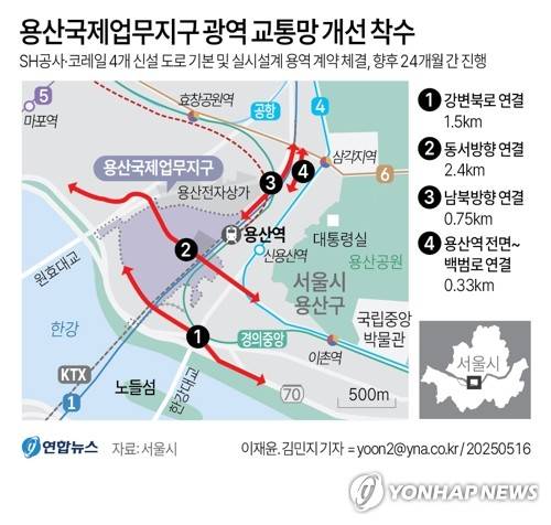 양 기관은 용산국제업무지구 4개 신설 도로의 기본 및 실시설계 용역 계약을 이날 체결했으며, 향후 약 24개월간 관련 작업을 진행한다.