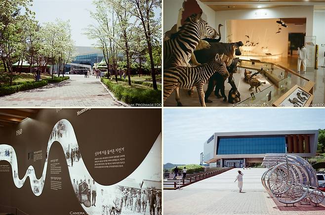 | ▲ 생물자원관과 자전거박물관 왼쪽 위부터 시계방향으로 1. 생물자원관의 외관 2. 생물자원관 내부 3. 자전거박물관 외관 4. 자전거박물관 내부 |