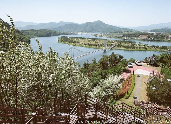 | ▲ 학전망대에서 보이는 경천섬공원 계단 입구까지 차를 타고 올 수 있다. 주변에서 가장 전망이 좋은 곳 |