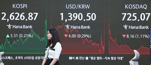 지수는 전장보다 9.28포인트(0.35%) 오른 2,630.64로 출발한 뒤 주로 2,620대에서 등락하며 방향을 탐색하는 모습이었습니다.