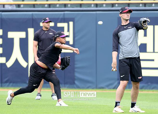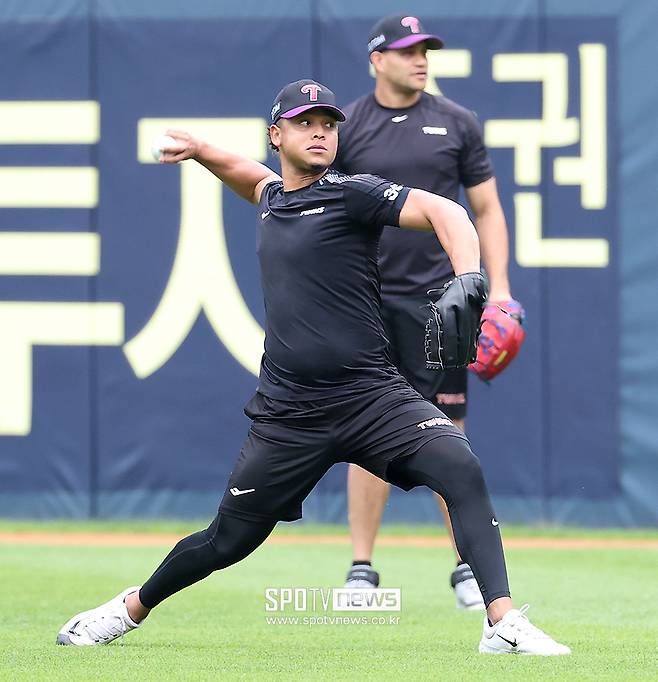 [스포티비뉴스=잠실, 곽혜미 기자] 허벅지 부상으로 인해 6주 이탈하게 된 LG 투수 에르난데스가 빠른 회복세를 보이며 투구 훈련을 했다.