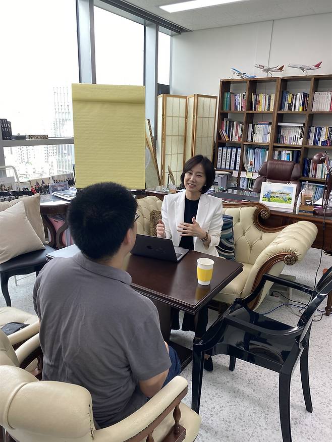 "저는 이준석 후보에게 고마운 점도 있어요. 이 후보 덕분에 제가 정치를 끝까지 해야겠다는 강한 의지를 갖게 됐거든요. 우리가 지금까지 열심히 걸어오면서 민주화를 이루어냈고 그게 후진되지 않게 해야죠. 그리고 제가 늘 했던 얘기인데 저희 사무실 앞이 청과물 시장이거든요. 저희 아버지가 그곳에서 과일 가게하셨어요. 단칸방에서 시작했던 허은아가 전문대 출신으로 박사까지 하고 사업도 하고 또 국회의원도 했잖아요. 그런 것들은 우리가 아무리 욕 해도 이 나라에 기본적인 시스템이 있었기 때문이라고 생각해요. 그래서 '예측 가능한 사다리' 시스템을 구축하고 유지하는데 노력하는 그리고 소통하는 정치인이 되고 싶고요.