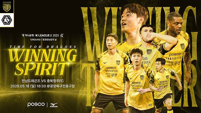 홈 개막전을 성황리에 마친 전남드래곤즈가 오는 18일 오후 4시 30분 광양축구전용구장에서 열리는 충북청주FC와 하나은행 K리그2 2025 12라운드 홈경기를 '동광양농협의 날' 네이밍데이로 개최한다.