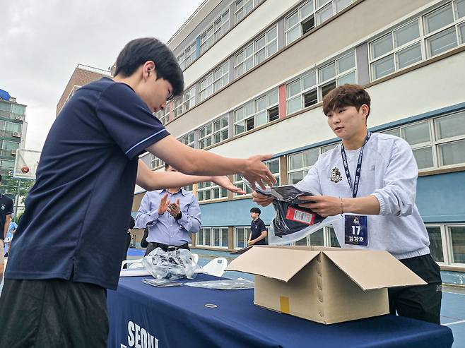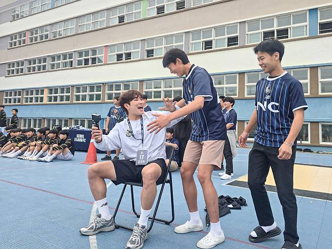 행사에 참여한 조준희 학생은 "이벤트에서 우승해 서울 이랜드 유니폼을 받는 것만으로도 기뻤는데 선수분이 직접 오셔서 정말 놀랐고, 실감이 나지 않았다. 와주셔서 감사드리고 앞으로도 자주 경기장에 가 응원하겠다"고 전했다.