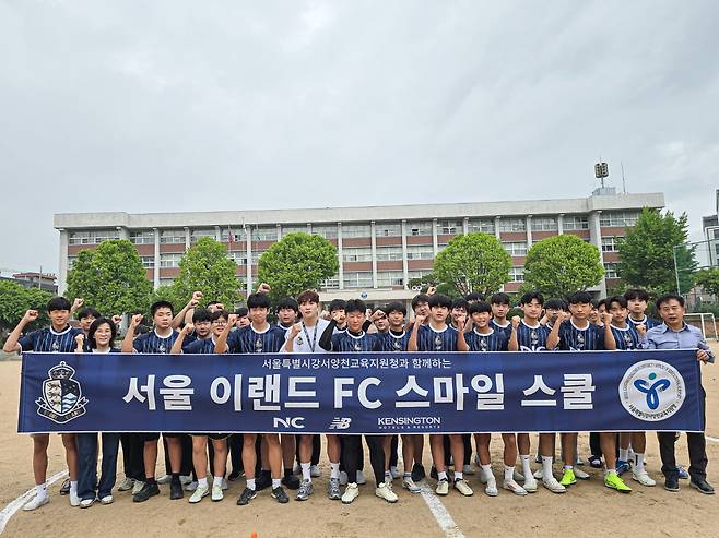서울 이랜드는 16일 서울 강서구 소재 화곡중을 방문해 학생들에게 유니폼을 전달하고 축구 코칭과 진로 멘토링을 진행하며 뜻깊은 시간을 보냈다.