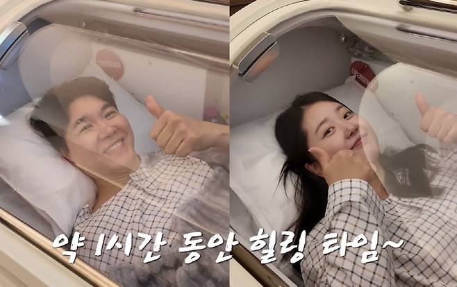 사이좋게 손 잡고 걸어가는 수다 부부는 건강 회복 프로젝트 첫 번째 장소로 향했다. 김다예는 "오늘 고압산소케어를 처음 받으러 너무 기대가 된다. 일단 나한테는 고압산소케어가 최적인게 염증 완화에 도움이 된다더라. 그래서 기대가 크다"면서 "나뿐만 아니라 수홍 아빠한테도 딱이다. 당신 손주 봐야할 거 아니냐. 요즘 트렌드 역노화, 저속노화 아니냐"고 했다.