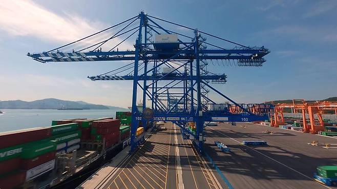 ▲ HD현대삼호가 제작한 자동화 스마트 컨테이너 크레인(DTQC)