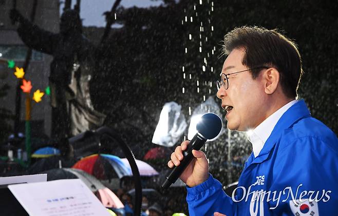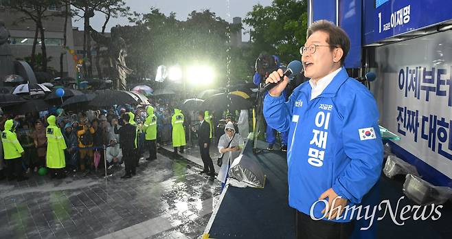 | ▲ 이재명 더불어민주당 대선 후보가 16일 전북 정읍시 정읍역 광장에서 지지를 호소하고 있다. |
