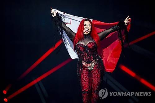 epa12107453 Malta's Miriana Conte takes part in the flag parade during the dress rehearsal for the Grand Final of the 69th Eurovision Song Contest (ESC) in Basel, Switzerland, 16 May 2025. EPA/GEORGIOS KEFALAS