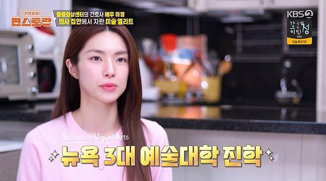 하영은 이화여대 졸업 후에도 예술에 대한 열정을 이어가며 뉴욕의 3대 예술대학 중 하나로 꼽히는 SVA(School of Visual Arts) 대학원에 진학해 유학을 다녀오기도 했다.