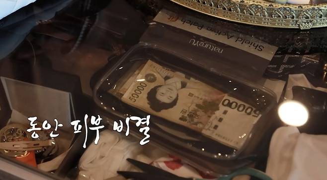 이미숙은 “집에서 평소 차려입지 않는다. 오늘은 그래도 티셔츠 입은 것이다. 평소 나의 모습을 보면 놀랄 것”이라며 “(작품 촬영하면) 가꿔진 모습으로 하루 12시간씩 일하는데 한 작품 끝나면 아무것도 하기 싫다. 해방하고 싶은 생각이다. 기초화장 외에는 화장품도 없다”면서 화장대를 공개했다. 화장품은 별로 없다고 강조했지만 서랍 한 구석에 오만원권 돈다발이 발견됐고 ‘동안피부의 비결’이라고 자막이 삽입돼 웃음을 더했다.